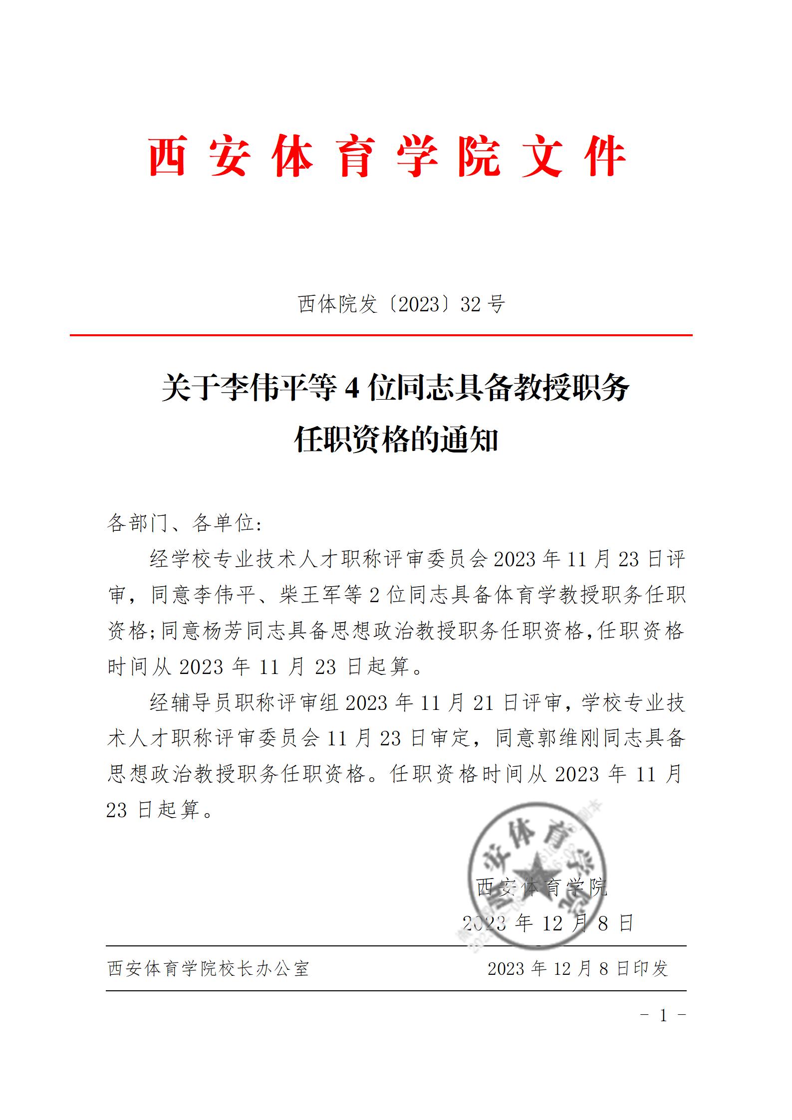 关于李伟平等4位同志具备教授职务任职资格的通知-久久不卡区,人事处