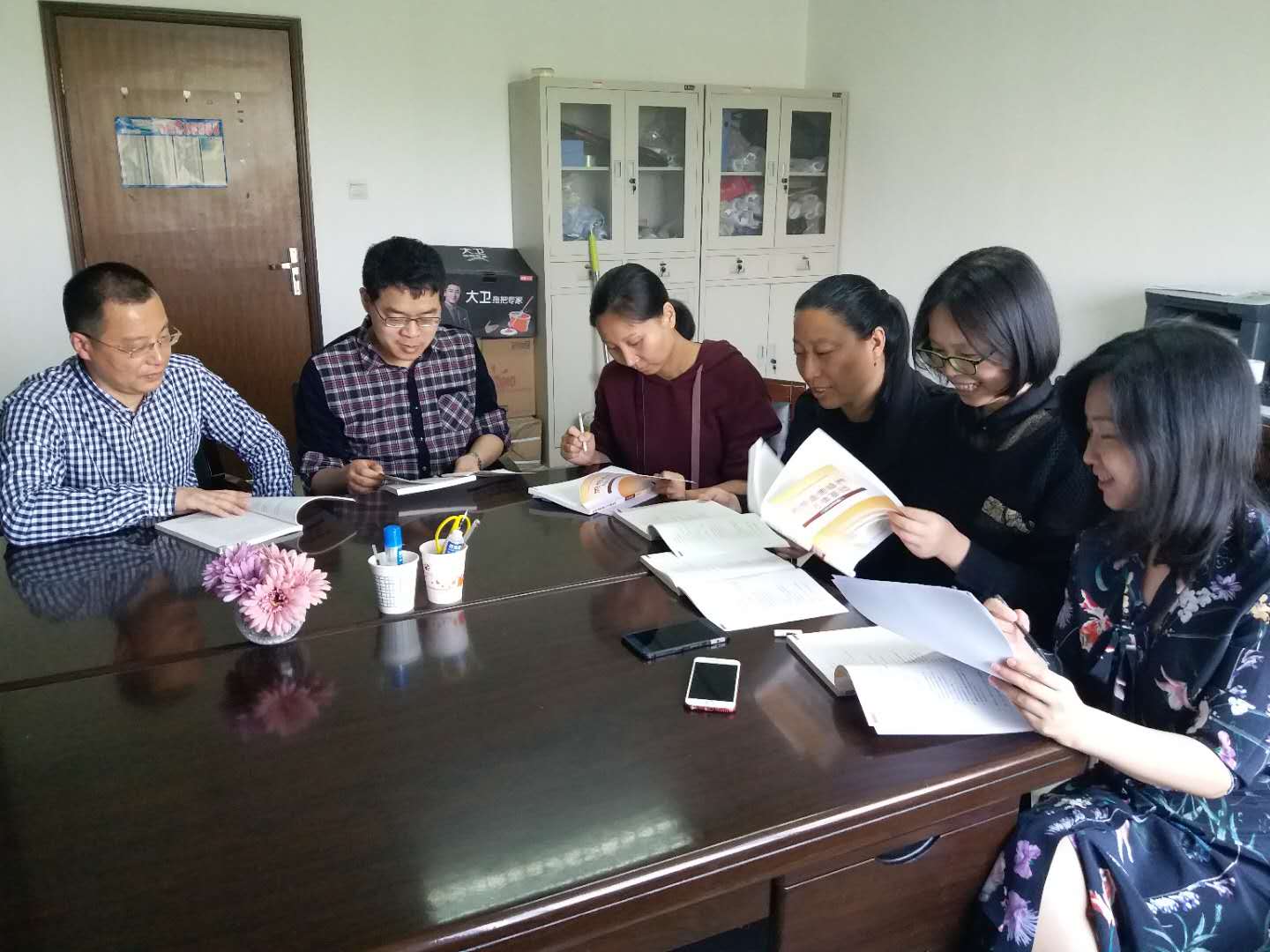 2018年4月18日下午,思政部组织全体教师进行教学研讨活动。教学研讨分为两组进行,“基础”教研室在其教研室办公室举行,其余三个教研室在图书馆资料室举行,思政部主任秋实先后参加了两组的研讨活动。大家根据各门课程的具体情况,对2018版新教材与旧教材的变化进行了比较,梳理了新教材的逻辑结构,重点讨论新教材的讲授与之前的教学如何衔接等问题。这次教学研讨活动有助于思政部教师深刻理解和科学使用2018版新教材,为做好十九大精神和习近平新时代中国特色社会主义思想进教材、进课堂、进学生头脑工作奠定了基础。