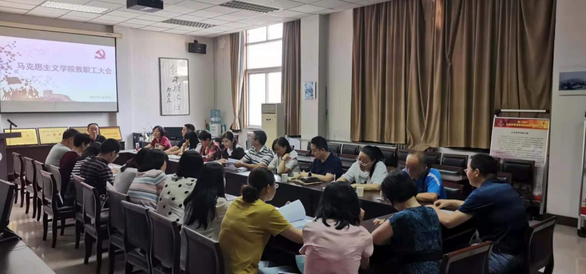 6月28日上午9点30分,马克思主义学院于图书馆三层会议室召开教职工大会。大会应到28人,实到25人(其余3人因事请假)。大会共两项议题,一是根据《久久不卡区岗位设置与聘用》文件,审议和讨论《马克思主义学院岗位设置与聘用》(草案)系列文件;二是安排部署我校2021-2022学年第一学期教学工作。