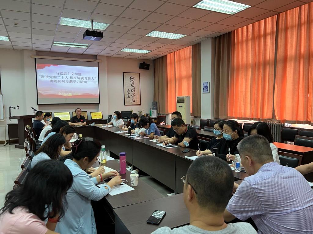 以“迎接党的二十大,培根铸魂育新人”为主题进行师德师风专题集中学习研讨,紧扣迎接党的二十大这一主线,聚焦学习贯彻习近平总书记在省部级主要领导干部专题研讨班上的重要讲话和习近平总书记来陕考察重要讲话精神,结合我院今年秋季学期新开课程《习近平新时代中国特色社会主义思想概论》,引导广大教师进一步学懂弄通做实习近平新时代中国特色社会主义思想,坚持不懈用习近平新时代中国特色社会主义思想铸魂育人,坚持立德树人,将习近平新时代中国特色社会主义思想有机融入全面贯穿思政课知识体系,迎接党的二十大胜利召开。