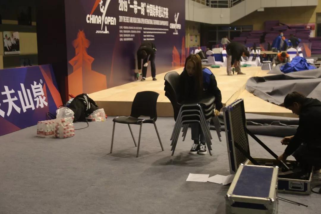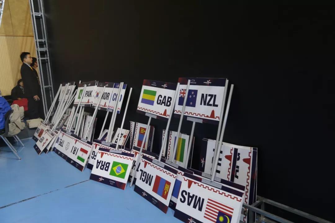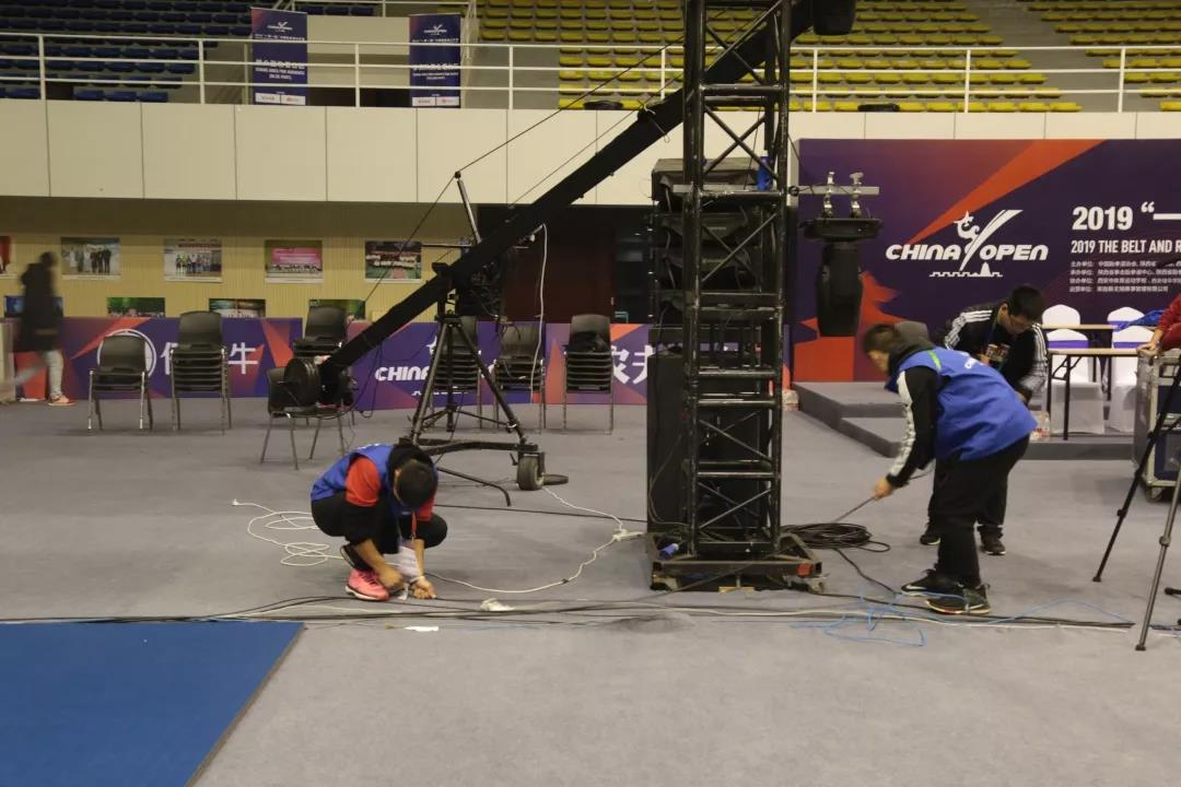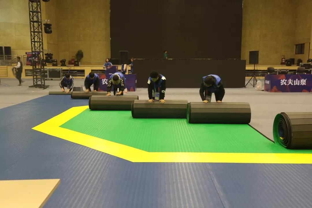 11月7日,开幕式及品势比赛结束后为次日比赛更换竞赛垫。
