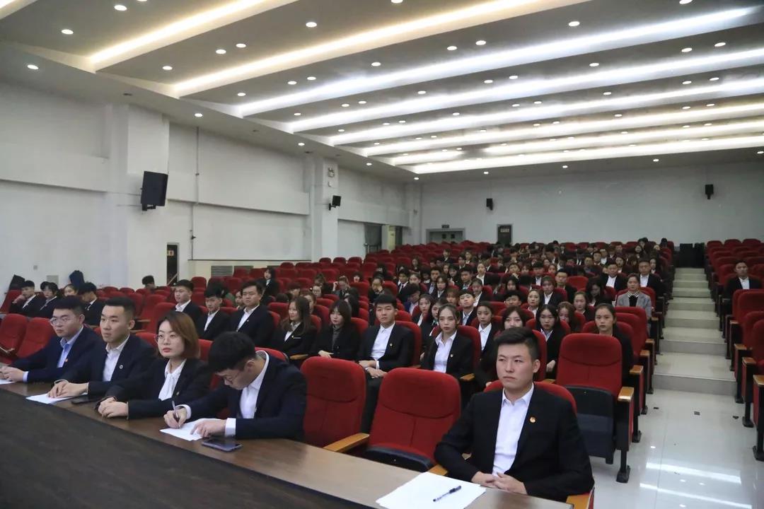 2019年10月21日晚7:00,久久不卡区2019届学生会干部任命大会暨第一次全体会议在教学楼五楼报告厅顺利召开。团委书记熊辉、团委副书记王红霞、团委老师董鹏举以及2019届学生会全体成员参加了本次会议。会议由团委老师董鹏举主持。