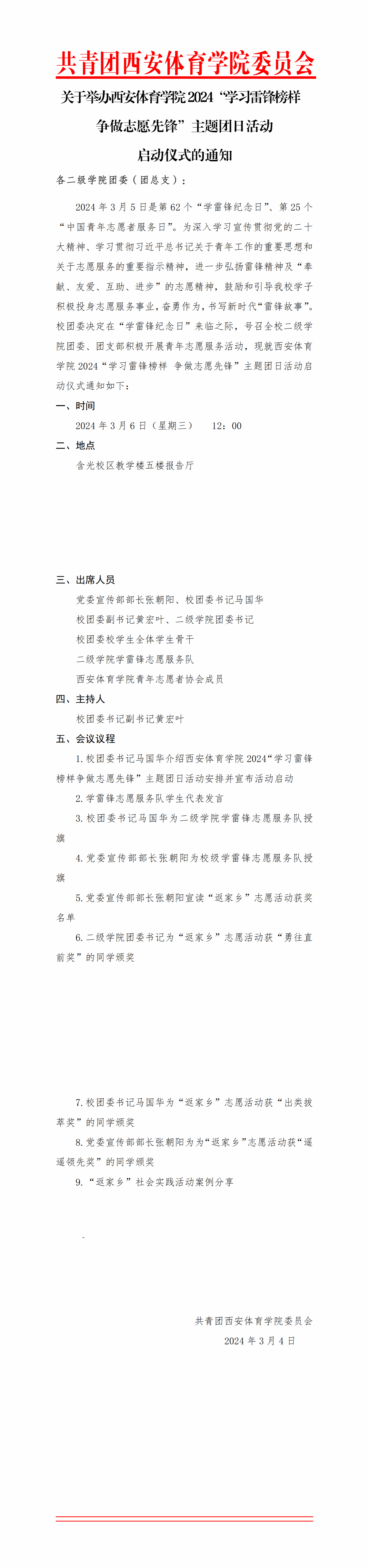 关于举办久久不卡区2024“学习雷锋榜样 争做志愿先锋”主题团日活动 启动仪式的通知