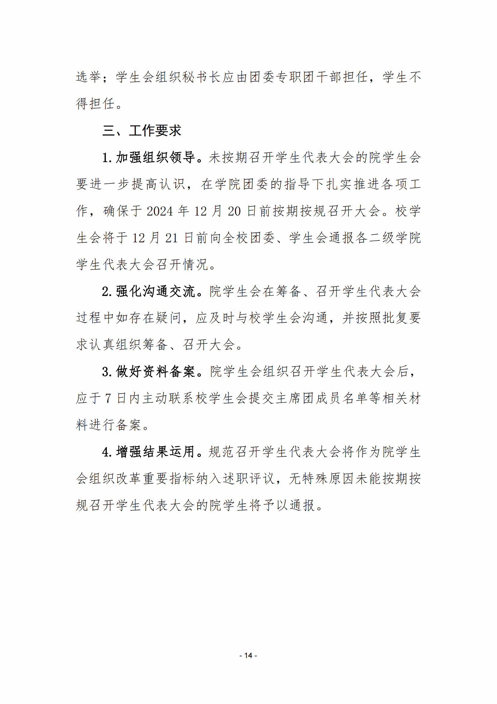 关于巩固我校各二级学院学生会工作成果 暨召开 2024 年院级学生代表大会的通 知