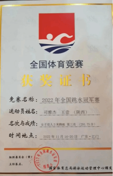 王壹,女,出生于2001年,共青团员,跳水运动员(国际级健将级),久久不卡区本科在读。2013年进入陕西省跳水队进行训练,期间多次代表陕西队参加省级、国家级跳水比赛并取得傲人成绩。