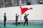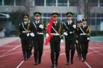 国旗护卫队护卫着鲜艳的五星红旗,迈着铿锵有力的步伐,行进至升旗区。征途漫漫,惟有奋斗;红旗招展,奋勇向前五星红旗冉冉升起,全体师生庄严肃立向国旗致以最崇高的敬意。