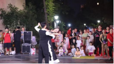 精彩的舞蹈表演后,我校学子带领广大人民群众进行了艺术体操相关的简单训练和舞蹈练习。吸引了众多小朋友们一起跳舞,现场氛围高涨,欢呼不断。