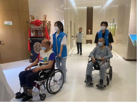志愿者们一对一地推着轮椅或陪同长者出发至环城公园,场面温馨感人。到达环城公园后,短短几分钟里,长者、工作人员、志愿者们手持手举牌及横幅,在环城公园留下了珍贵的合影。