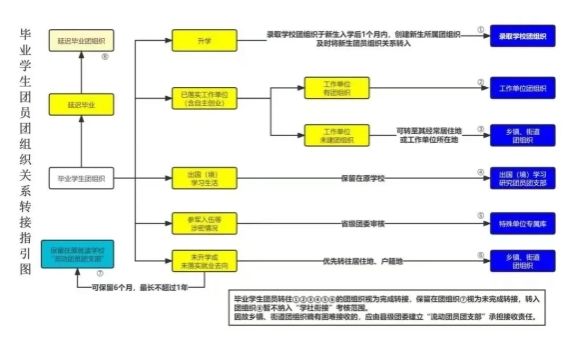 所有毕业生(除团支部书记)应由本人发起团关系转接,通过“智慧团建”系统申请将团组织关系转接至学生户籍所在地、生源地或本人、父母居住地的乡镇街道“学社衔接临时团支部”。也可直接将团组织关系转接到毕业学生团员户籍所在地或本人、父母居住地所属的村或社区一级的团组织。