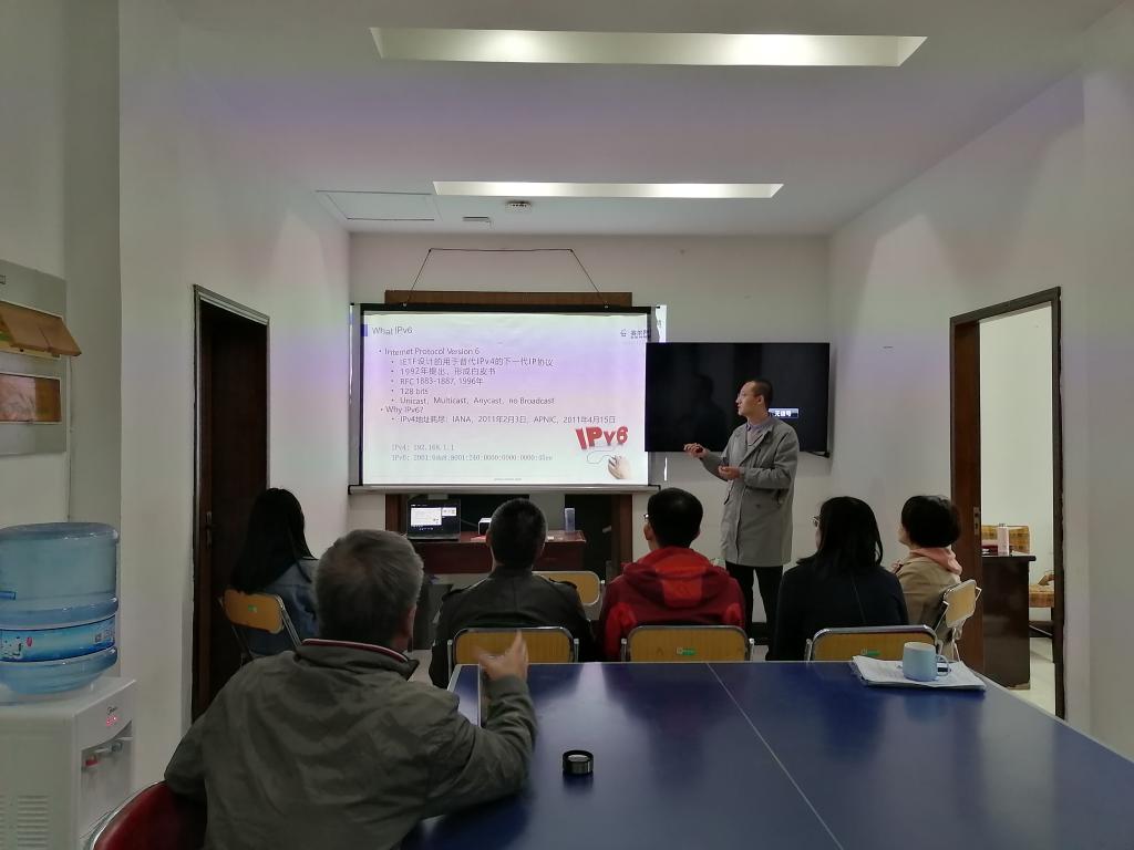 此次培训邀请到了赛尔网络有限公司高级工程师主讲。工程师首先解读了国家关于IPv6规模部署工作的要求,并结合我校实际情况,介绍了IPv6技术的应用与实施,分享了在IPv6环境下的网络安全管工作面临的挑战及其应对策略。通过此次培训,中心工作人员对IPV6技术有了更全面、深入的认识。