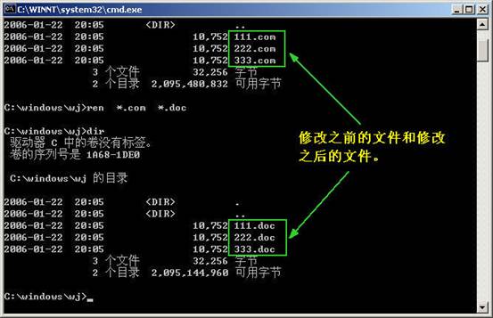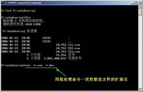 这样就可以显示文件的扩展名了,然后来到c:\windows\wj\ 这个文件夹中去看看有无同名的.com文件,如果有的话只需把扩展名改成.doc即可找回丢失的Word文件。 也可以在命令提示行来到c:\windows\wj 文件夹下,中用 ren *.com *.doc 命令来一次完成所有修改扩展名操作。