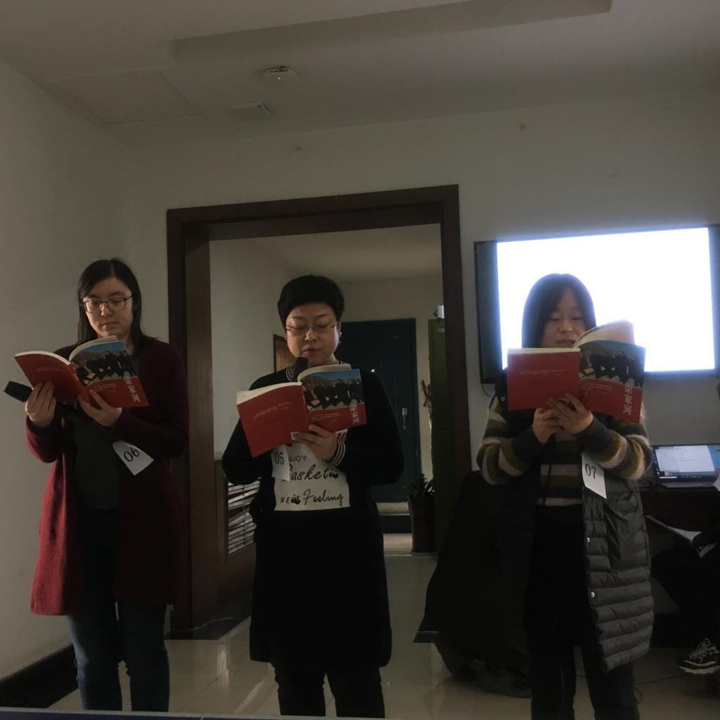 主持人首先介绍了此次活动的参赛选手及其朗诵主题,简要阐述了比赛流程和评分办法。随后,王楠和王廷璇老师声情并茂的朗诵《祖国啊,我亲爱的祖国》拉开了此次精彩朗读盛宴的序幕;诗之灵魂在于情,情真意切才有诗,魏娟丽副主任的《乡愁》激起大家内心阵阵涟漪,浓浓的归属感和爱国情怀感染着在座的每一位听众;袁涛、马妍、山杜鹃三位老师以角色朗读的方式带领我们走进习近平总书记在梁家河的青葱岁月;王秋茸老师为迎接“三•八”妇女节专门选颂了一首《木兰诗》,铿锵有力、抑扬顿挫的朗诵鼓舞着女性再创辉煌;吕养民老师自创的诗词《校园早春》,满怀对久久不卡区每一寸土地的深厚感情;张琳和司敏两位老师朗颂的《改革开放再出发》,表达了对祖国母亲浓浓的爱和对未来满满的憧憬和希望;……张民朝主任作为比赛最后一位选手压轴登场,创作并朗诵了题为《我们的中心和我们》的散文,表达了对中心每位同志的关怀、肯定、希望和鼓励。