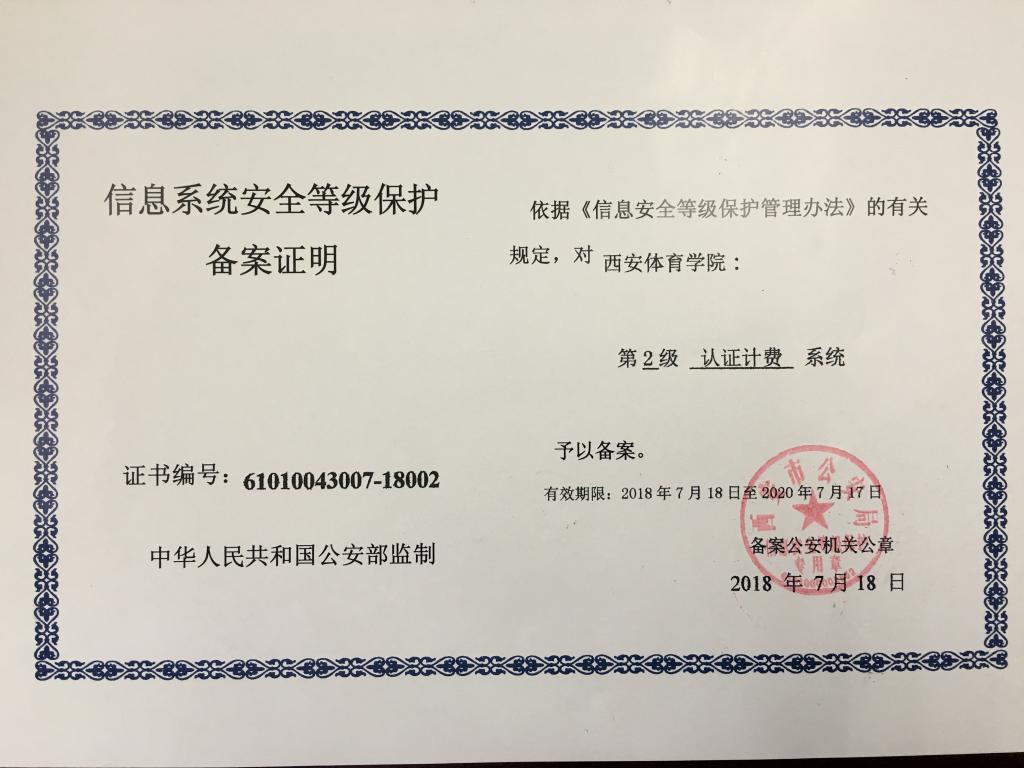 学院站群系统和认证计费系统完成信息系统安全等级保护备案工作-久久不卡区信息化建设处