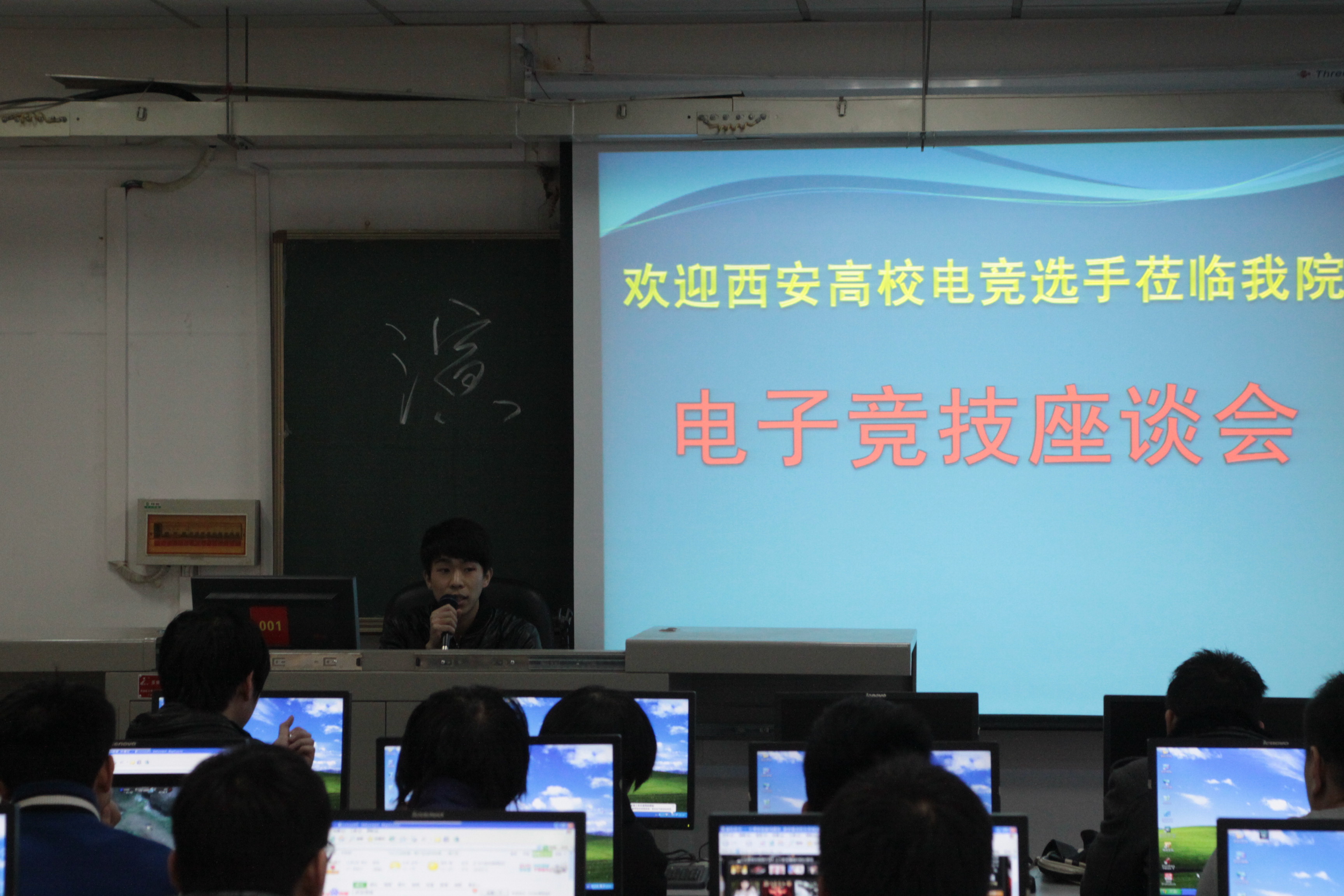 2013年12月4日下午两点半,网络管理中心在教学楼604机房举行了电子竞技座谈会,本次会议特邀西安高校5名电竞选手,与我院电子竞技教师及学生进行了深切的交流。