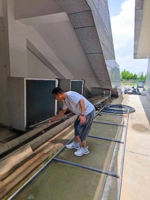 尤为值得一提的是,针对高温天气可能对制冷设备带来的挑战,工程师们更是主动出击,对手球馆核心机房等关键区域的空调外机进行清洗,有效保障了制冷设备的运行效率,为机房设备营造了稳定适宜的运行环境。这一系列扎实有效的举措,不仅彰显了信息化建设处对师生学习生活环境的高度重视,更体现了团队成员们勇于担当、甘于奉献的职业精神。