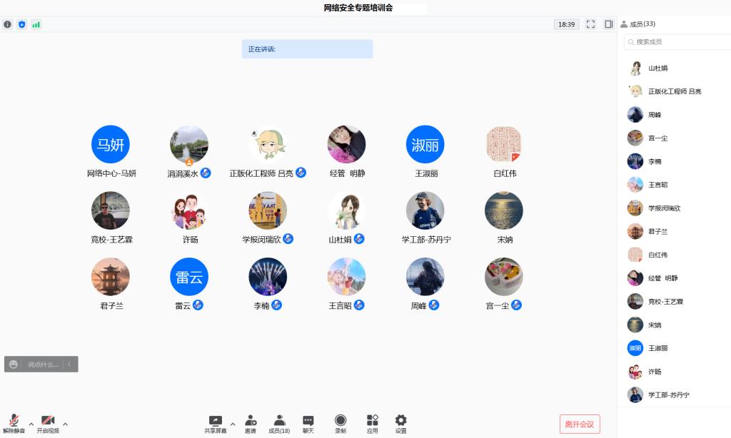 本次培训会是在学校网络安全和信息化工作领导小组指导下,网络管理中心组织开展的一次重要培训。通过本次培训,参加培训的人员更加深刻认识到网络安全的重要性和紧迫性,对提升网络安全风险防范意识、责任意识、技术能力起到了重要的作用。