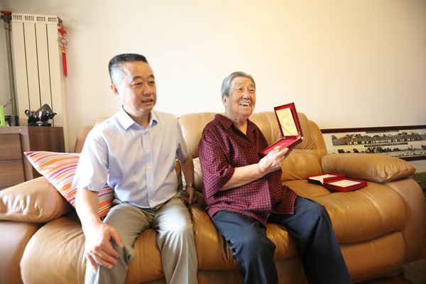 本网讯 9月2日,在纪念中国人民抗日战争暨世界反法西斯战争胜利70周年前夕,院长周里、副院长文立新及党委宣传部、离退休办公室相关负责同志走访慰问了我院抗战老同志王哲,代表全院带去对抗战老同志的崇高敬意和美好祝福,仔细了解她的身体和生活情况,并转赠了由党中央、国务院、中央军委颁发的纪念勋章和慰问金。