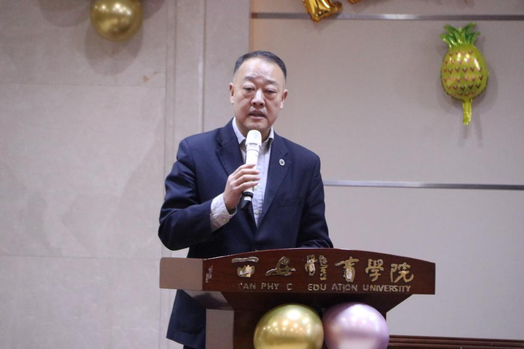 张朝阳部长在致辞中向同学们致以关心和问候,他表示,2020年是不平凡的一年,融媒体中心的诸位同学在指导老师的带领下积极迎接疫情负面影响带来的挑战,及时做出应对措施,维持了多方平台的正常运营,体现出动手早、文章多、覆盖广、情意深、教和学宣传强等特点,也取得了一定的成绩。他指出,2021年既是建党100周年,又是十四五规划的开局之年,对陕西而言,又是举办十四运的重要年份,希望融媒体中心围绕学校中心工作,将原创内容提质、工作效率提速、审查审核提升,每位成员加快成长速度,共同与学校一道,讲好体育故事,讲好西体故事,传播西体好声音。