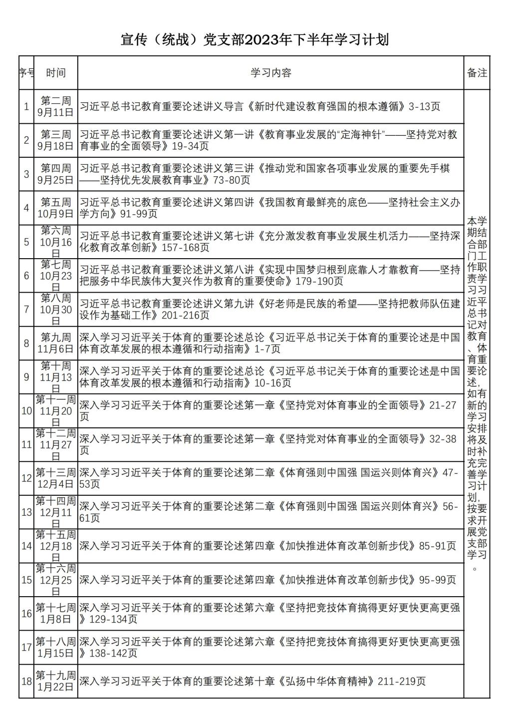 宣传(统战)党支部2023年下半年学习计划-宣传部