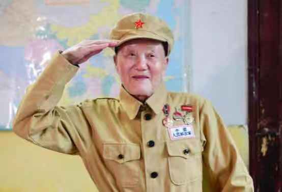 部队来人了,老兵心中掀起波澜。面对军装上的军徽,老兵用一条独腿坚强站立,缓缓举起右手,庄严地行上军礼。