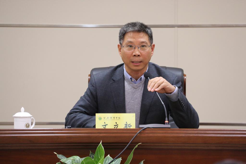 随后,文副院长做重要讲话。文副院长首先对在座所有辅导员老师提出表扬,他提出“折磨你们的不是脑力劳动和体力劳动,而是操心”,他用这一句话表达了对辅导员工作的充分肯定。针对下一步的学生工作,结合我院实际,他提出要“以学生为本”并要求辅导员老师:一要坚持党的领导,听党的话,在十九大来临之际,做好相关学习工作,为伟大中国梦作出努力;二要加强思想领域教育,打好意识形态领域的主动战,为社会主义建设培养出可靠接班人;三针对即将到来的本科教学审核评估工作要高度重视,辅导员要和学生一起做到严格要求自己;四是要求辅导员必须切实做好本职工作:五是要加强安全问题,主要从政治认识、态度及作风三个方面做实做稳。