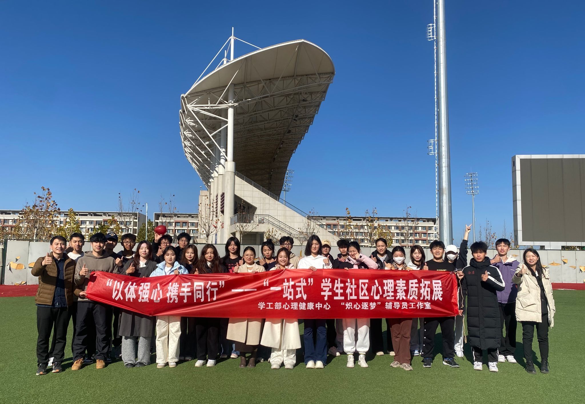 为锻造西体学子强健体魄,积极探索“以体育人,以体强心”的有效实施路径。11月27日中午,由学工部心理健康中心主办的“以体强心 携手同行”——“一站式”学生社区心理素质拓展活动在鄠邑校区顺利举行。中心全体教师、工作人员参与,青年志愿者协会协助活动开展。