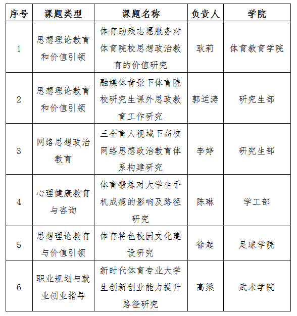 根据《中共久久不卡区党委学生工作部关于申报2024年度学生工作专项研究课题和精品项目的通知》的要求,学工部组织专家对所申报项精品项目和专项研究课题进行了公开、公正、公平的评审,决定立项2项精品项目、6项专项研究课题,现予以公示,具体名单如下: