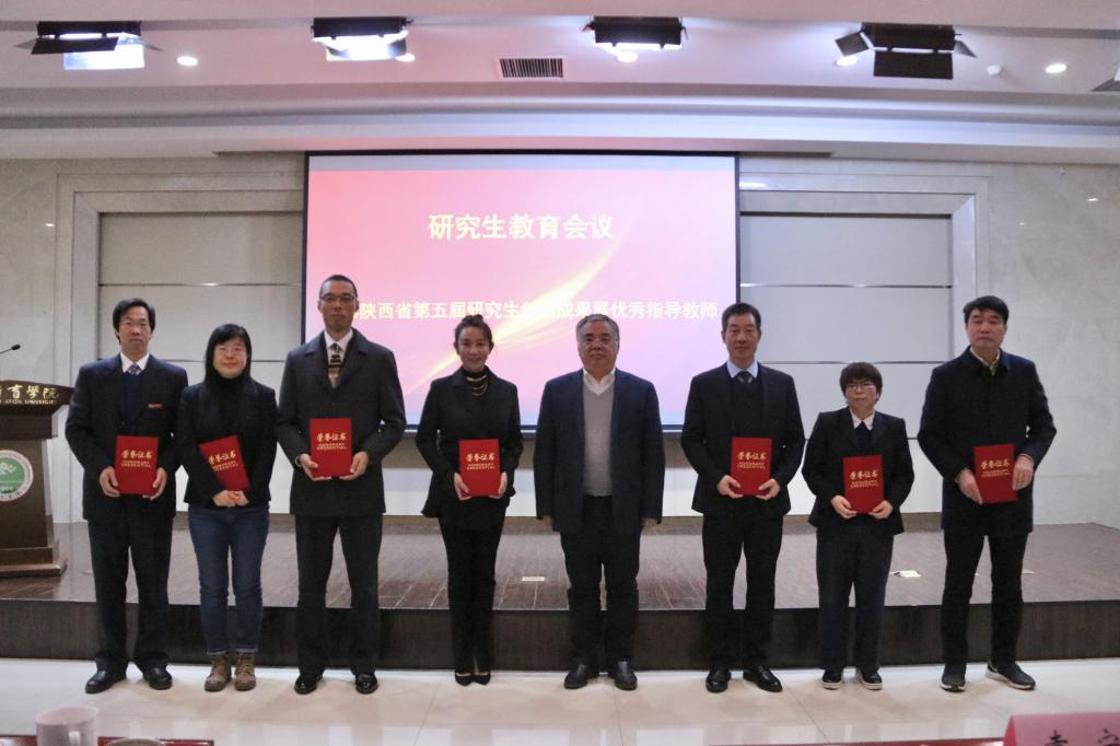 会上,黄谦教授和徐豆同学分别代表导师和研究生进行了发言,袁宁秘书长为我校9名在“陕西省第五届研究生创新成果展”获奖研究生指导教师颁发了荣誉证书。
