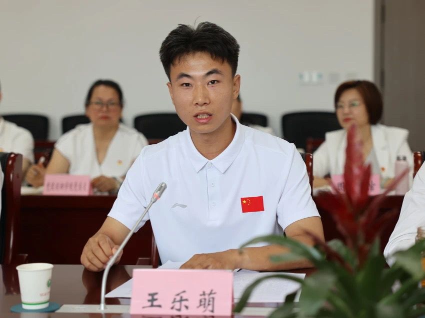 体育教育训练学院学生党员代表王乐萌讲述了自己参加陕西省体育支教、帮助指导学生的成长历程,他表示通过这段支教经历,更加坚定了自己积极发挥党员的模范带头作用,为基层体育、教育事业和乡村振兴事业贡献青春力量的信念。